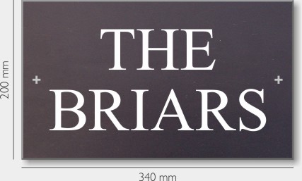 Slate Sign, size 340 x 200 x 20mm, two hidden fixing holes & no border. 50mm high Roman characters, painted white. Engraving to read: |